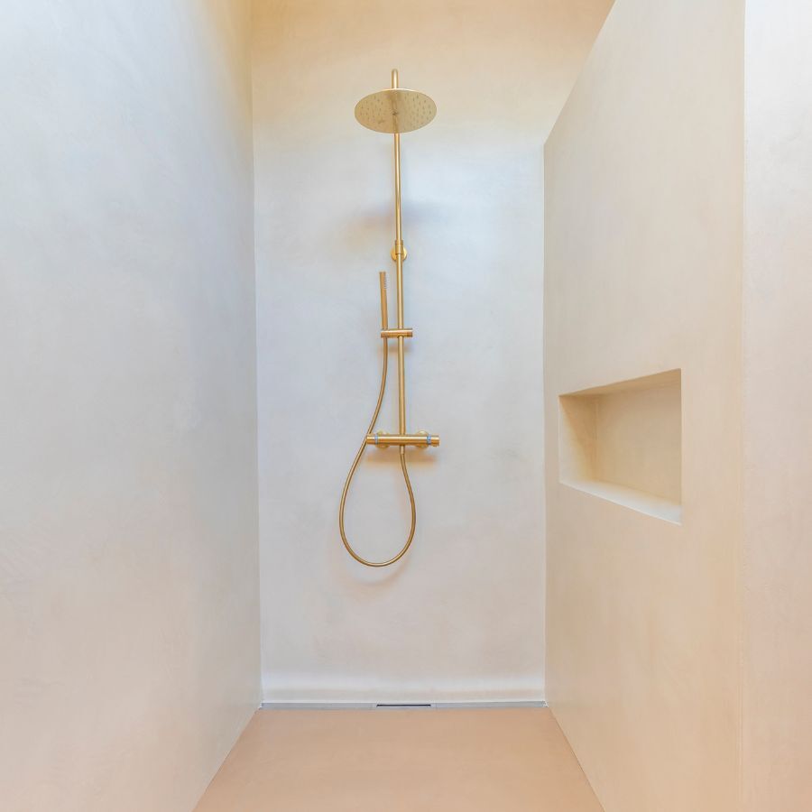 - Rendu continu et contemporain, parfait pour une douche à l’italienne en béton ciré